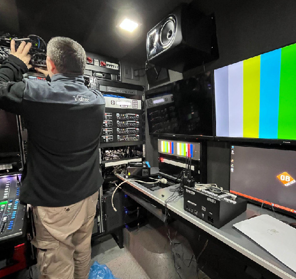 Para el móvil de exteriores, a Viditec le llevó más de un mes de implementación, cubriendo el carrozado interior del furgón, el diseño y el cableado del móvil. Viditec suministró 13 kits compuestos por cuatro cámaras Sony Z280 4K y equipados con la licencia para transmisión digital LTE dual SIM, incluido el server PWS-110RX1A Sony, para el contralor central de estudio, que permite la recepción de hasta 32 cámaras de forma simultánea; y adaptadores compatibles con redes móviles, Wi-Fi o Ethernet para una gran variedad de formatos de emisión.