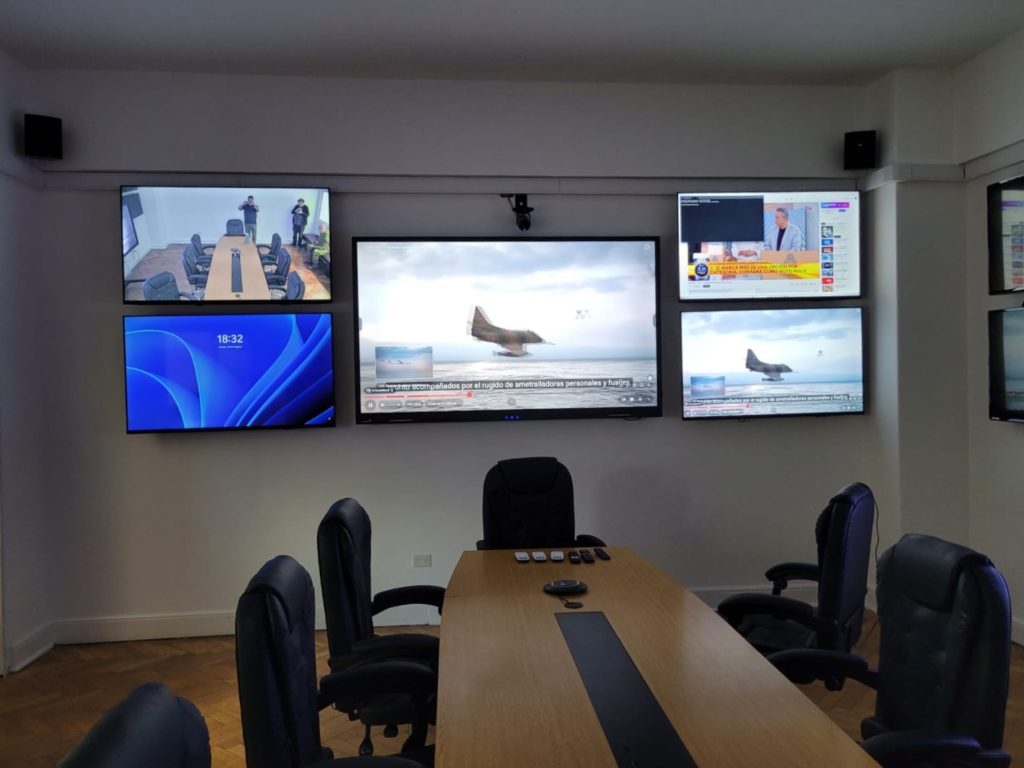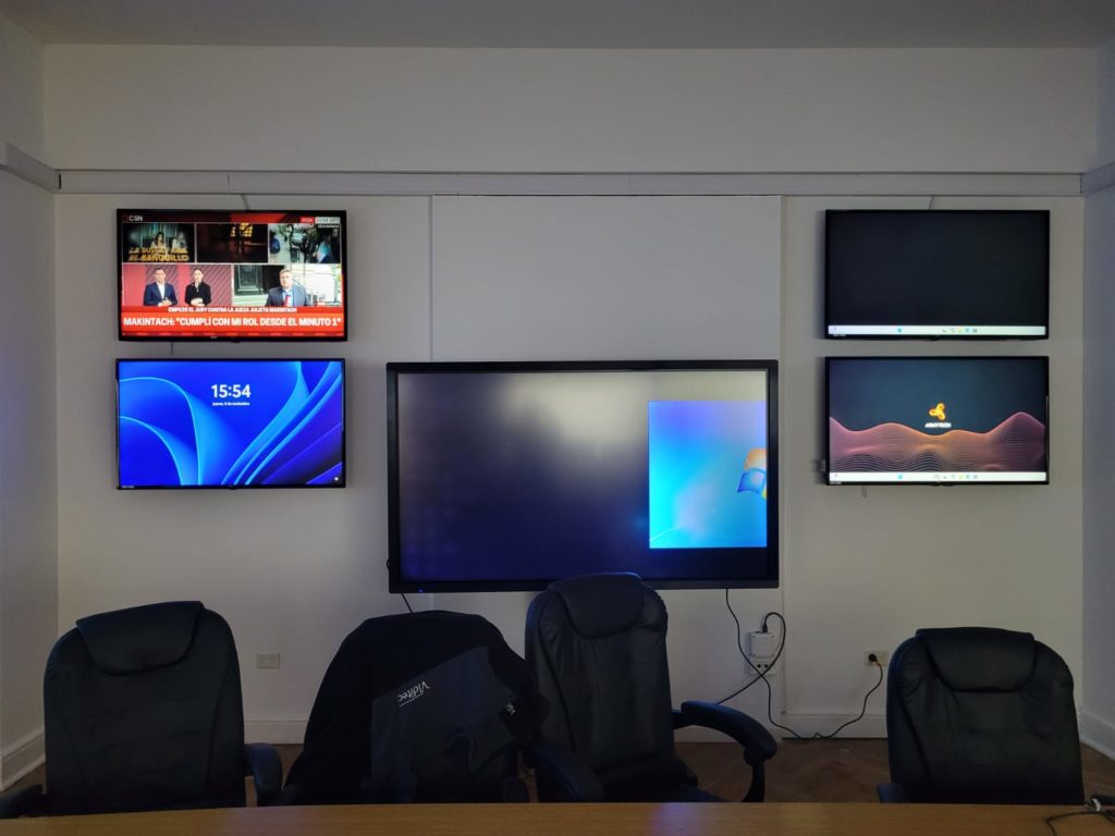 La provisión del equipamiento tecnológico requerido fue compuesto por computadoras de alta gama con sus respectivos monitores de alta calidad, Smart TVs 4K, una pantalla interactiva de 86 pulgadas integrada a un módulo de PC especializado en monitores multitáctiles, las tomas normalizadas y el cableado correspondiente. Todo pensado para el máximo rendimiento de los procesos de gestión de estas salas, formando una infraestructura de red y energía direccionada a una plena operatividad.
