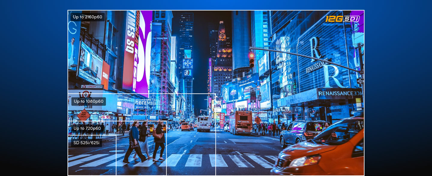 Las conexiones de estos conversores admiten señales SD, HD y UHD, lo cual permite conectar equipos SDI a sistemas basados en una infraestructura IP. Estos dispositivos son compatibles con formatos 525i59.94, 625i50 y 720p, así como 1080i y 1080p a una frecuencia máxima de 60 f/s, y 2160p60. Al cambiar la fuente, la unidad detecta automáticamente el formato, y los modelos con varios canales brindan la posibilidad de procesar simultáneamente señales de distintos formatos.