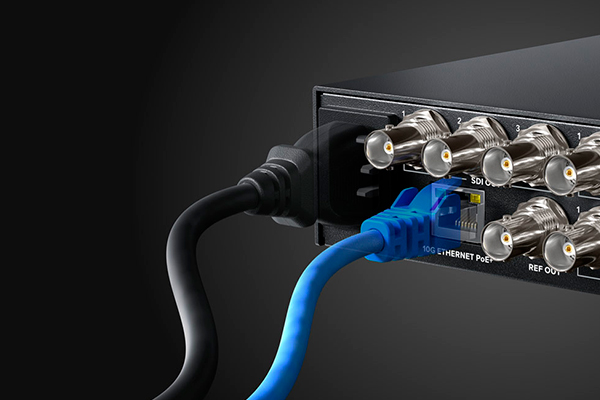 Las versiones para bastidores de los conversores Blackmagic 2110 IP incluyen una fuente de alimentación para corriente alterna. Esto permite enchufar las unidades en cualquier toma de corriente convencional. La fuente de alimentación universal es compatible con cualquier voltaje entre 100 y 240 V) lo que permite utilizar el dispositivo en distintos lugares del mundo. A su vez, la mayor parte de los modelos también pueden alimentarse a través de la conexión Ethernet, lo cual resulta ideal cuando el sitio donde se instalará el conversor cuenta con un suministro de energía limitado. De esta forma, el conversor funcionará incluso si el cable de alimentación no está conectado a la corriente. En consecuencia, la tecnología PoE+ ofrece un sistema de respaldo a la hora de alimentar los dispositivos.
