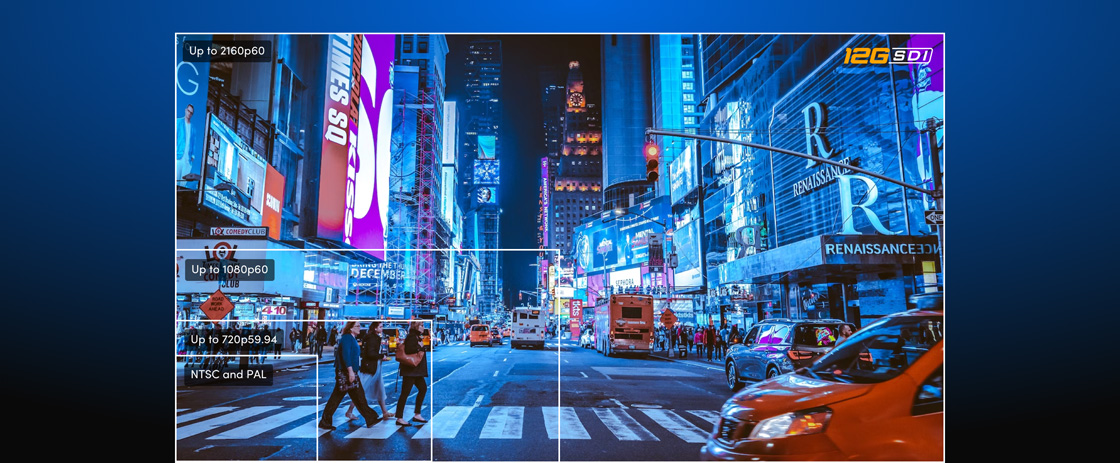 Detección automática de señales SD, HD, SDI 6G y SDI 12G.